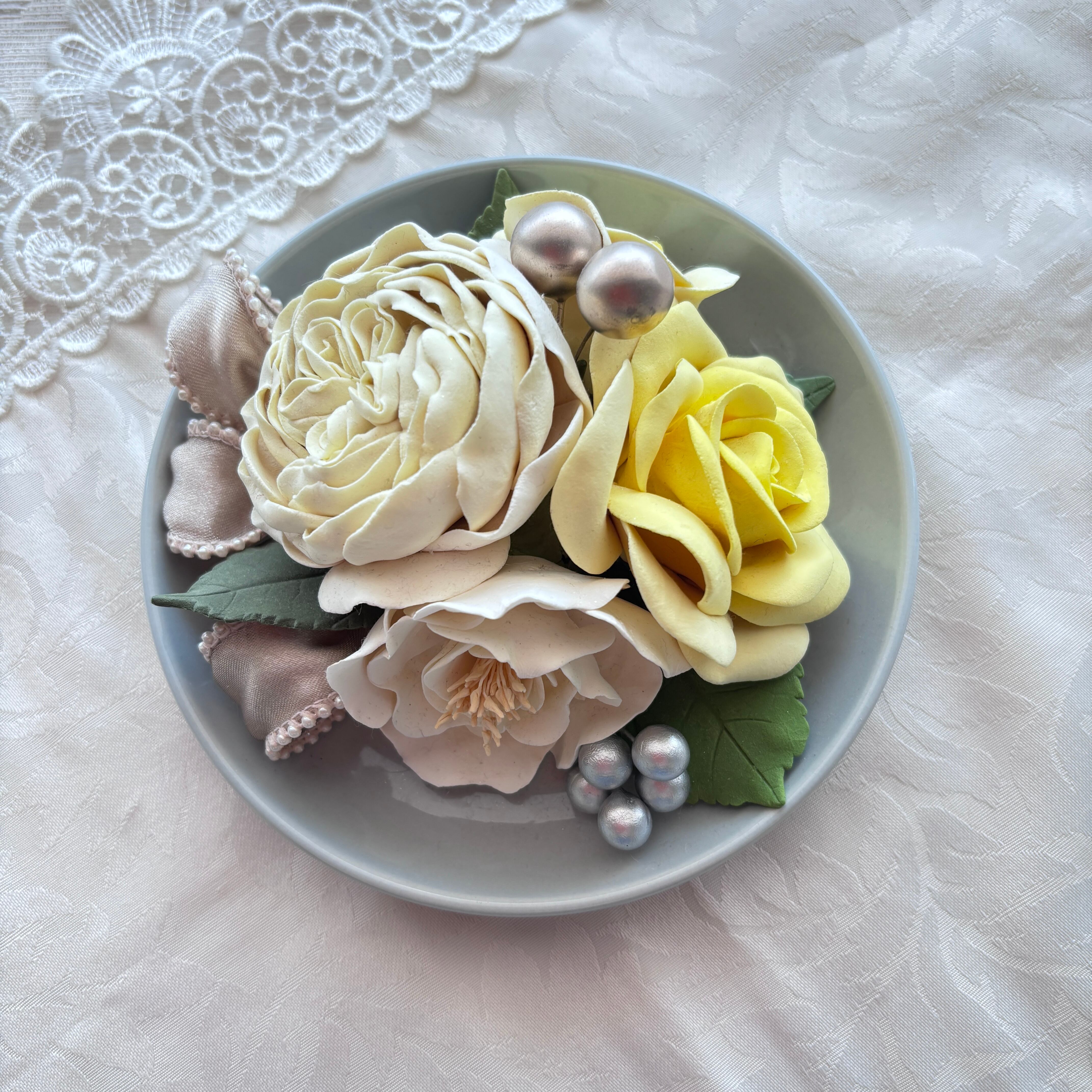 大人可愛いクレイフラワーアレンジ|ローズプレート(母の日・インテリア)