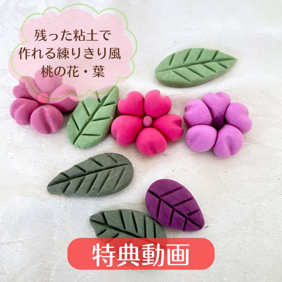 今だけ、購入いただいた方に「練りきり風 桃の花・葉の作り方動画」をプレゼント!残った粘土でお作りいただけます
