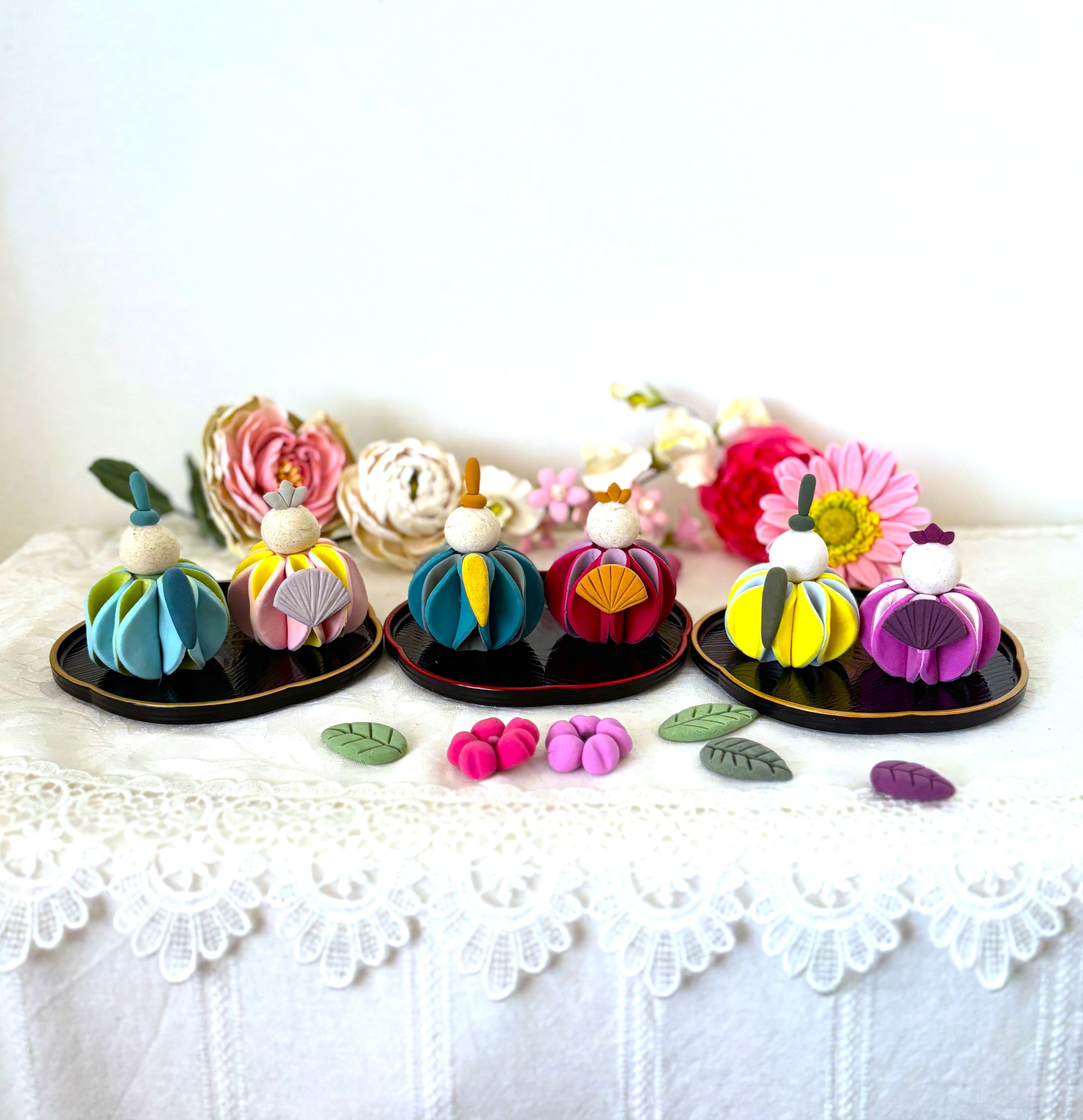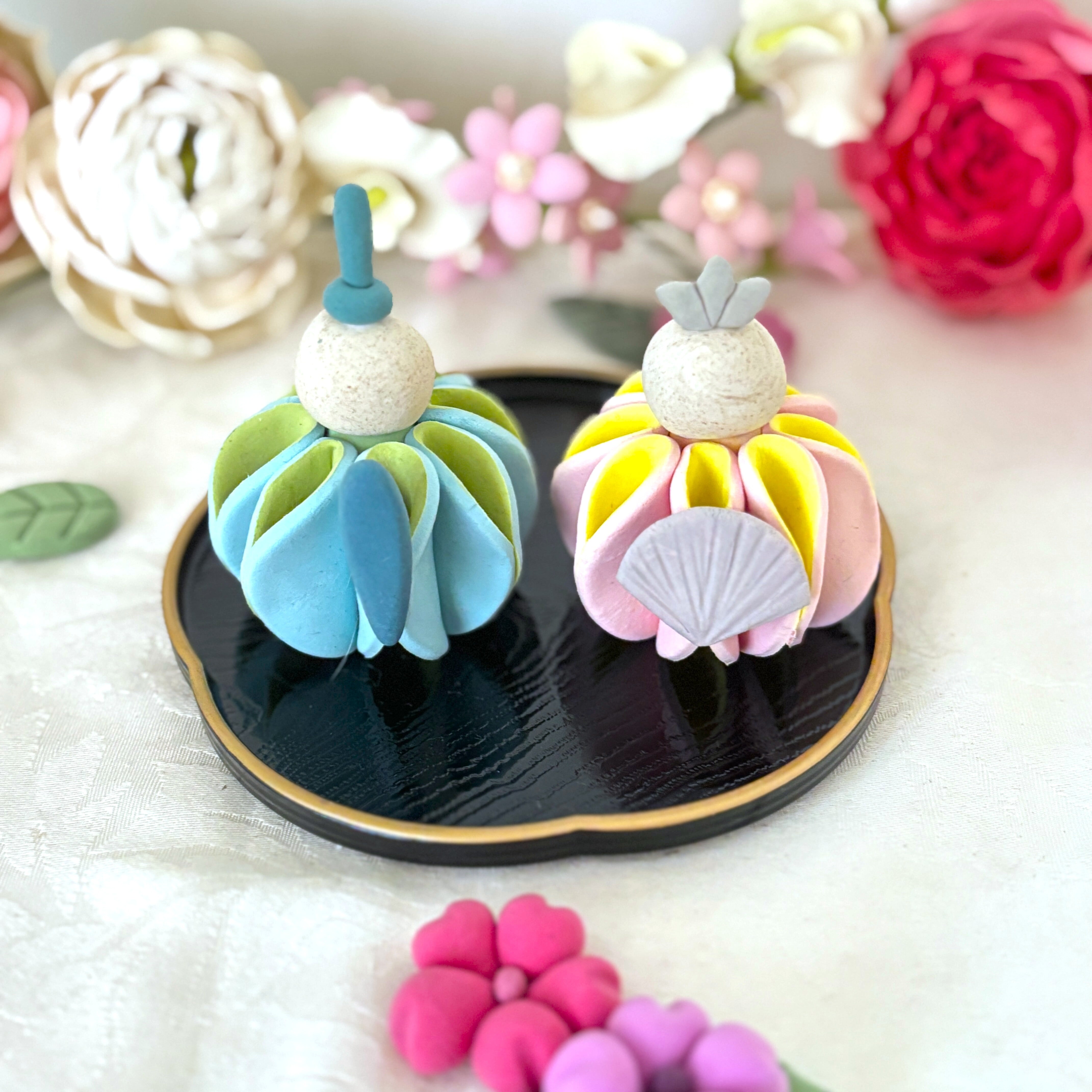 ※こちらの雛飾りは、個人で楽しんだり、プレゼントに関してはご自由にしていただいてかまいませんが、販売、ワークショップ等はご遠慮ください。